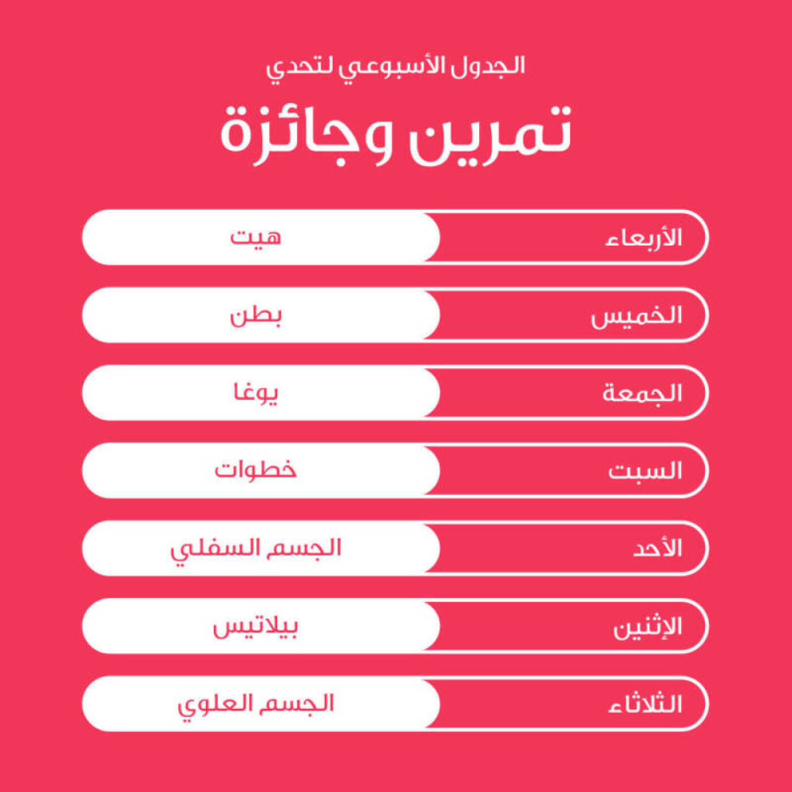 • فترة المشاركة اليومية: من وقت نزول التمرين حتى الساعة 23:59 (AST) من نفس اليوم.
