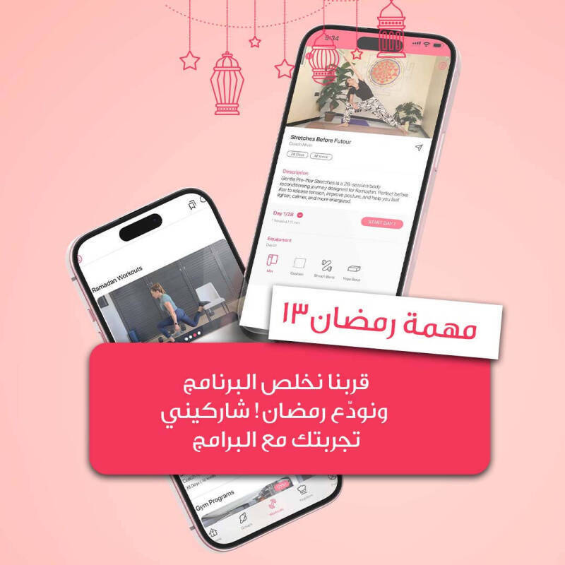 مهمة رمضان 13قربنا نخلص البرنامج ونودّع رمضان! شاركيني تجربتك مع البرامج 💪🌙 واحكيلي جربتي فستان العيد ولا لسا؟ 👗💖