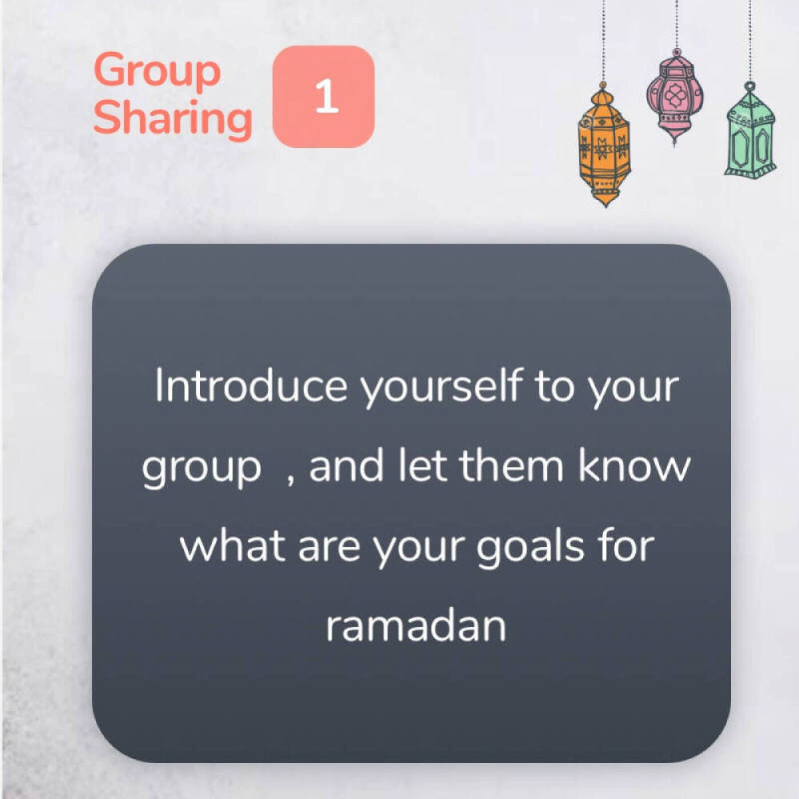 Introduce your self to your group , and let them know what re your goals this ramadan☺️